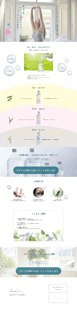 LP制作 2025年9月6日 最終更新日時 : 2025年9月10日 medimuse 【LP制作】 飲料水の販売LPを課題で作成しました。要点定義書に基づき、自分なりにキャッチコピーを考えながらデザインしました。 【使用ソフト】Figma【製作日数】2週間